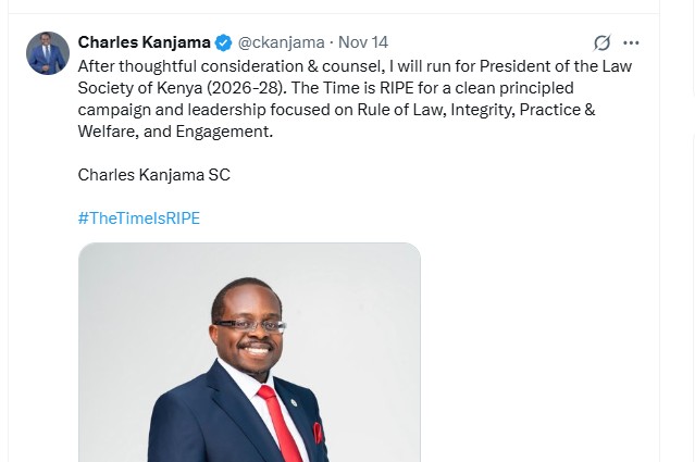 So far, Senior Counsel Charles Kanjama has announced his bid for the Law Society of Kenya presidency for the 2026 to 2028 term. He made the declaration on X on Friday, saying the moment calls for principled leadership.